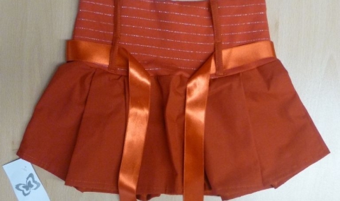 Детската пола е продавана в магазин в Габрово на цена 8.00 лв. Моделът й е с удължена талия и плохи, в различни цветове.