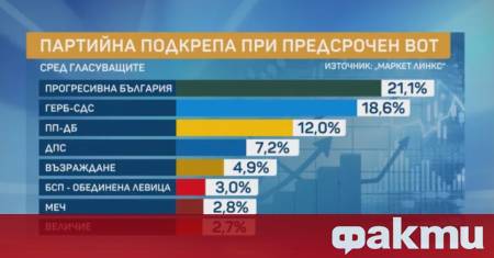 Засега води с 3.5% пред ГЕРБ до изборите пада от 22 на 10 процента а ГЕРБ от 18 на 609:50 18.03.2026