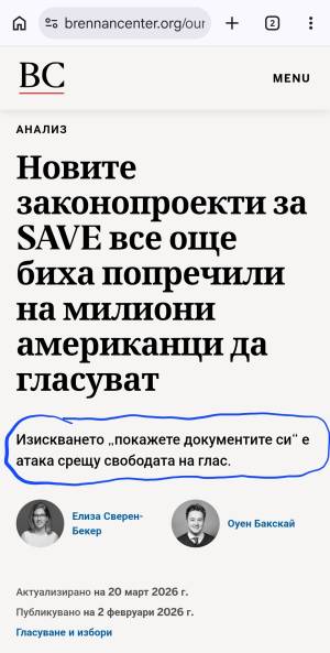 Че В САЩ се гласува и без паспорт, и без лична карта НО на българският роб вече толкова му е деформирана психиката и съзнанието от атлантическите нацисти че е невъзможно да го осъзнае. И слага (-) и си мисли че е лъжа ....... За съжаление това е реалността в родната ни кочина и няма журналистика и политология която поне леко да го информира за реалностите за съжаление09:29 26.03.2026