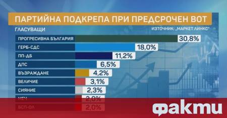 Под 4-процентната бариера остават „Величие“ с 3,1%, „Сияние“ с 2,3%, МЕЧ с 2% и „БСП – Обединена левица“ с 2%. „Очакваме значително по-голяма избирателна активност. „Прогресивна България“ черпи от тези новоприходящи в изборния процес български граждани“, каза в „Тази сутрин“ по бТВ Добромир Живков от „Маркет ЛИНКС“.