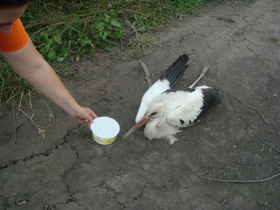 На средата на пътя открихме първия жив щъркел. Лежеше напълно безпомощен, положил глава в прахта и само отваряше и затваряше очи. Едното му краче беше неестествено обърнато назад и обгоряло. Започнахме да звъним на всички възможни телефони и институции за които се сетихме. Дадохме вода на птицата, напръскахме я с вода и звъняхме телефон след телефон“, разказват от организацията.