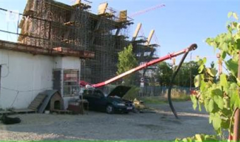 Стрелата на съоръжението е дълга 52 метра и според собственика на смазаната кола машината е била поправяна днес.