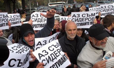 От другата страна на входа пък е протестът в подкрепа на Волен Сидеров. Хората започнаха да се събират от 8 часа, за да защити водача си. На мястото е и депутатът Десислав Чуколов, чиито имунитет също е застрашен. “Ще протестираме срещу двойните стандарт. Нека да ни свалят имунитети и да ни очернят медийно ние знаем, че сме прави”, заяви Десислав Чуколов. Събрали са се около 100-200 души, които носят плакати с надпис: "Аз съм Сидеров. Арестувайте ме.".