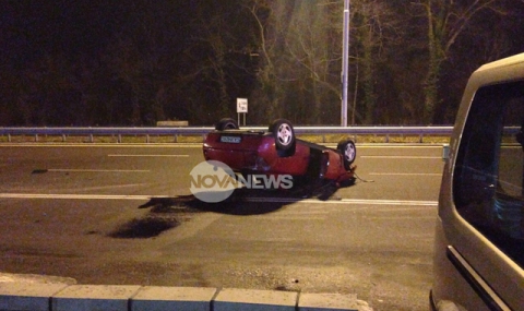 Кола се обърна по таван на "Цариградско шосе" на скоростната отсечка на изхода на София заради превишена скорост. Като по чудо няма жертви. Няма и други ударени автомобили.