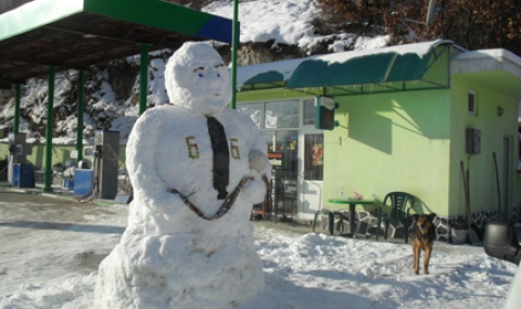 Снежен човек на премиера Бойко Борисов се извисява в гоцеделчевското село Места. Леденото „произведение“ е високо 2,5 метра и е кръстено на министър-председателя, пише news.bg.