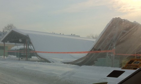 Огромен ламаринен покрив на търговски център рухна в Пловдив. По чудо инцидентът се размина без жертви и пострадали, съобщиха от Областната дирекция на МВР. Причина за падането на покрива е натрупалия се отгоре близо метър сняг, който е натежал прекалено много на съоръжението.