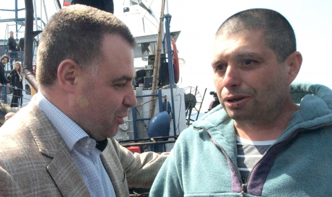 Министърът на земеделието и храните д-р Мирослав Найденов посрещна на рибарското пристанище „Север” във Варна завърналия се след почти една година задържане в Румъния кораб БЧ 5159 и капитанът на кораба Христо Спасов.