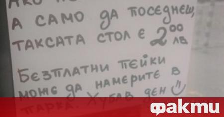 "Масата е към кафето. Ако не си клиент, а само да поседнеш, таксата стол е 2:00 лв. Безплатни пейки може да намерите в парка. Хубав ден :)", пише на съобщението.