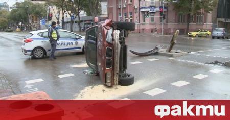 Автомобил се преобърна на булевард "Мария Луиза" в града, а шофьорът му избяга от местопроизшествието.
