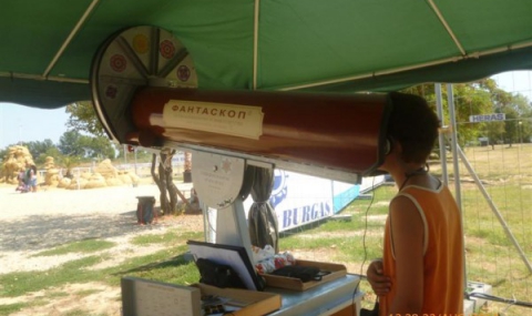 Ако това лято сте били на Фестивала на пясъчните фигури, няма как да не сте забелязали гигантския калейдоскоп, поставен точно на входа. Създателите му – инж. Сирманов и дъщеря му – инж. Диляна Сирманова, са го кръстили Фантоскоп. „Аз съм калейдоскопът от вашето детство. Вие пораснахте, аз същоJ”, гласи надписът на строгото на пръв поглед, но създаващо радост изобретение, коментира BurgasInfo.com. Няма как да не си спомните калейдоскопите, които продаваха по панаирите, когато бяхме деца. И аз имах такъв, подарен от моя дядо. И досега ми е чудно как така кристалчетата в тръбичката се превръщат в красиви картини, различни всеки път...