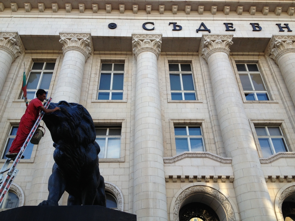 По-късно в следобедните часове лъвът пред Съдебната палата бе почистен.