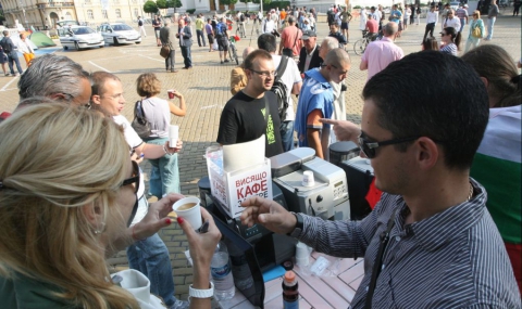 Около стотина души се събраха в 8 ч. на протестно „пиене на кафе“ пред Народното събрание.
