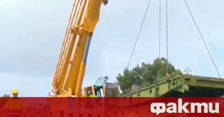 "Първо трябва да се демонтира съществуващото съоръжение и след като се демонтира на неговото място ще се изгради металното съоръжение. Самото метално съоръжение представлява тип военен мост, който е на различни сегменти. Сегментите ще се сглобяват тук, на място и ще се поставят с кран. Надяваме се в рамките на днешния ден цялото съоръжение да бъде транспортирано до тук, тъй като това са големи изключително тежки елементи, които се движат много бавно по пътната мрежа. Ако днес успеем да го докараме в цялост тук, утре ще почне неговият монтаж. Амбициите са в рамките на два до три дни да бъде монтирано и да бъде пуснато движението", каза Десислава Паунова, член на УС на АПИ.