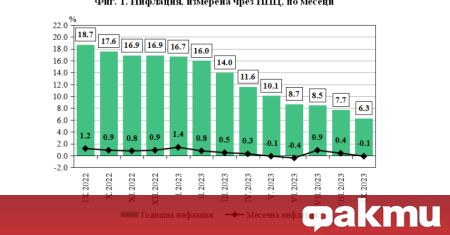 Нов спад на годишната инфлация отчитат от НСИ. Месечната инфлация е -0.1%, а годишната е 6.3%.