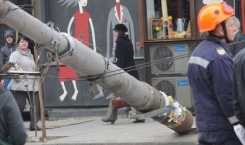 Инцидентът е станал малко преди 8 ч. и е затруднил за кратко движението. Стълбът паднал напряко на пътното платно и попречил на минаващите шофьори.