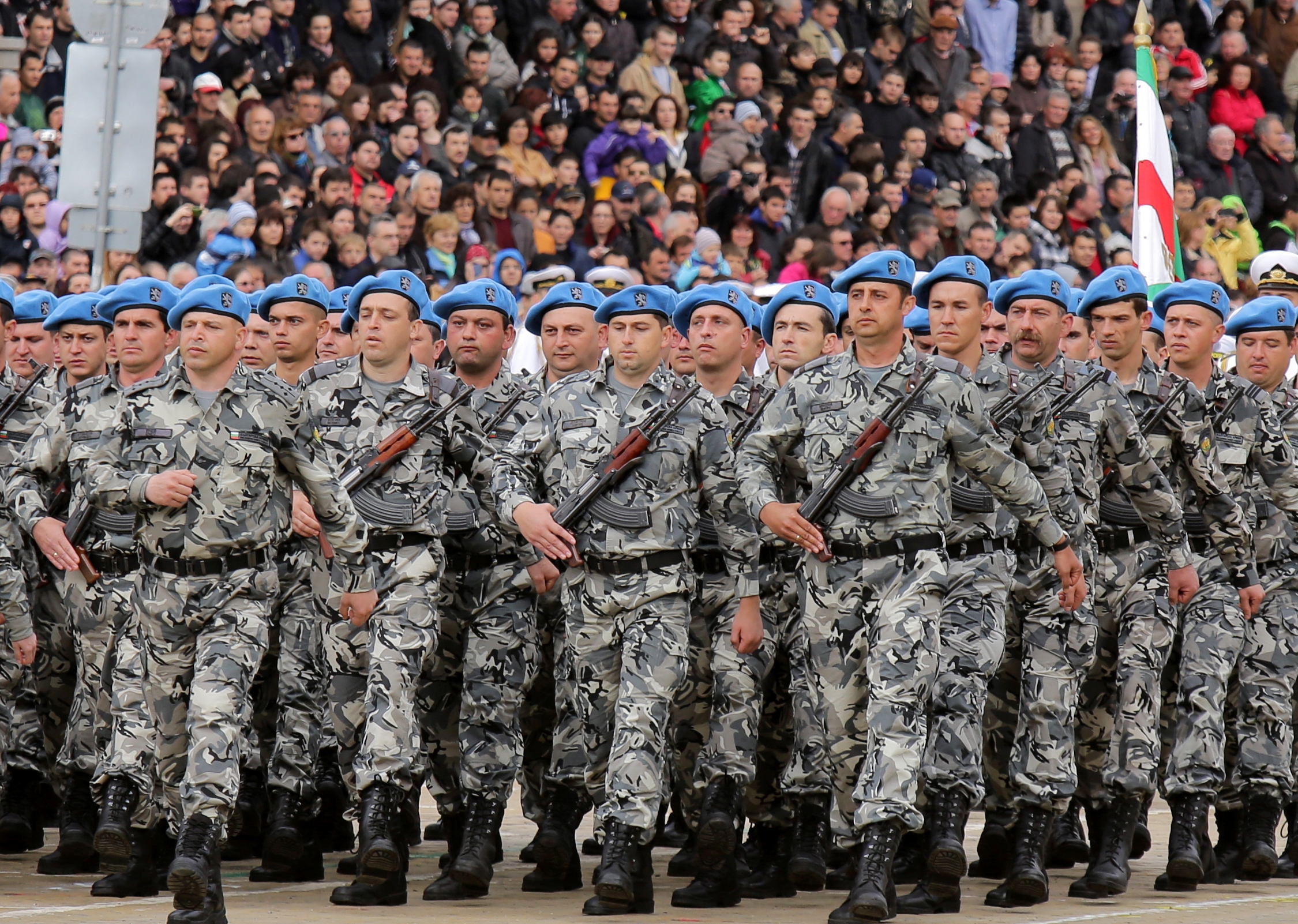Президентът и върховен главнокомандващ Росен Плевнелиев прие строя на представителните части и поздрави военните с празника.