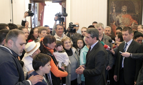На първите посетители на президентската институция Росен Плевнелиев отстъпи стола си в залата, където заседава Консултативният съвет за национална сигурност, показа им и работния си кабинет.
