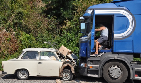 "Предната греда на трабанта доста сериозно бе огънала предницата на потърпевшия тир. Не че камионът няма да се движи, но определено се нуждае от ремонт".