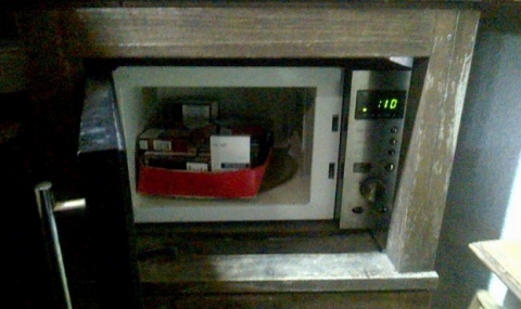 Митническите инспектори се натъкнали на колекция от целия асортимент, предлаган от търговеца, удобно подреден в микровълновата печка зад бара на заведението. Освен намиращите се там количества, с цигари без бандерол бил зареден един кашон под бара и друг под бюро в търговския обект. Открити и иззети са общо 916 кутии от различни марки.