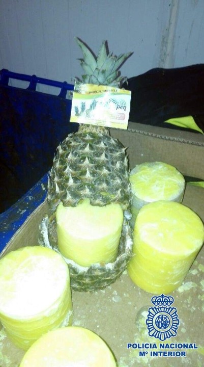По думите на говорител на Министерството на вътрешните работи на Испания, сред хилядите пресни ананаси полицията намерила плодове, в които бил замаскиран наркотикът.
