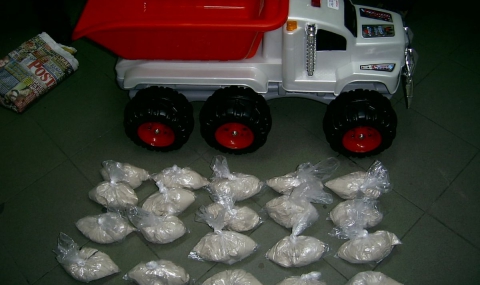 При проверка на автобус, пътуващ по редовна автобусна линия от Турция до Черна гора през България, на митничарите направила впечатление детска играчка – камионче.