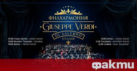 Една от най-знаковите музикални институции в Южна Италия – Филхармоничният оркестър Giuseppe Verdi от Салерно, пристига за първи път в България. През месец август родните почитатели на класиката ще имат рядката привилегия да се докоснат до автентичното италианско звучене в поредица от концерти под открито небе.