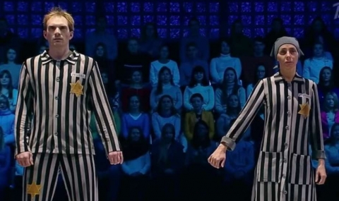 По време на изпълнението, тя и нейният партньор, се появиха облечени като концлагеристи, за да представят съдбата на еврейските затворници в немските трудови лагери по време на Втората световна война.