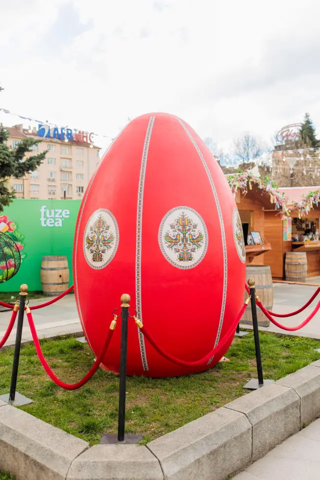 Фокусът тази година е впечатляващата арт инсталация – 3-метрово червено великденско яйце, украсено с българска шевица, което бързо се превърна в любима атракция за посетителите и един от най-сниманите символи. Яйцето носи послания за здраве, ново начало и връзка с българските традиции.