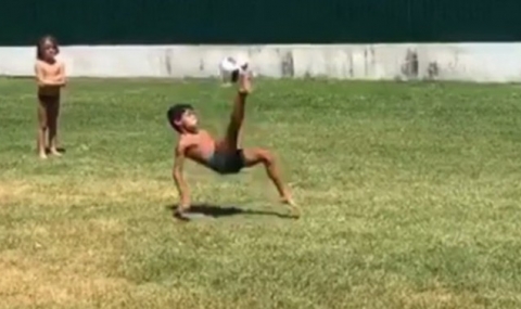 Португалецът сподели видео в социалната мрежа Instagram, на което малчуганът прави задна ножица и отбелязва гол в градината.