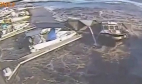Голям круизен кораб потегли от пристанището, но образувалата се вълна помете малко корабче, пуснало котва на същото пристанище.