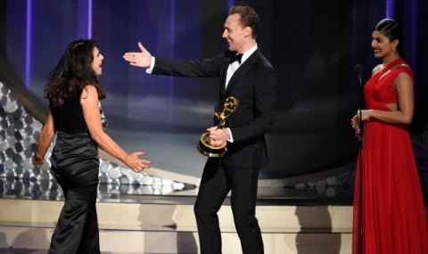 Актьорът е с първа номинация за ролята си в минисериала The Night Manager и не изглеждаше никак притеснен, че позира сам пред фотообективите. Все пак съвсем скоро към него се присъединиха колегите му Оливия Колман и Хю Лори, пише DailyMail.