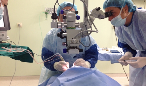 „Процедурата се нарича витректомия. Влязохме през 3 отвора с големина 0.6 мм в задния полюс на окото, евакуирахме стъкловидното тяло, оцветихме въпросната мембрана със специално багрило и със специален пинцет я отлепихме и отстранихме от ретината. След това заместихме стъкловидното тяло с въздух и определен газ и затворихме отворите“, описва извършената уникална хирургическа интервенция в Пловдив офталмологът. И признава, че това е доста сложна операция. Д-р Мишев е сред единиците специалисти, които я прилагат в България.