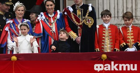На нея е заедно с трите си деца - принц Джордж (на 9), принцеса Шарлот (на 8) и принц Луи (на 5). Тримата са облечени в синьо и определено се забавляват.