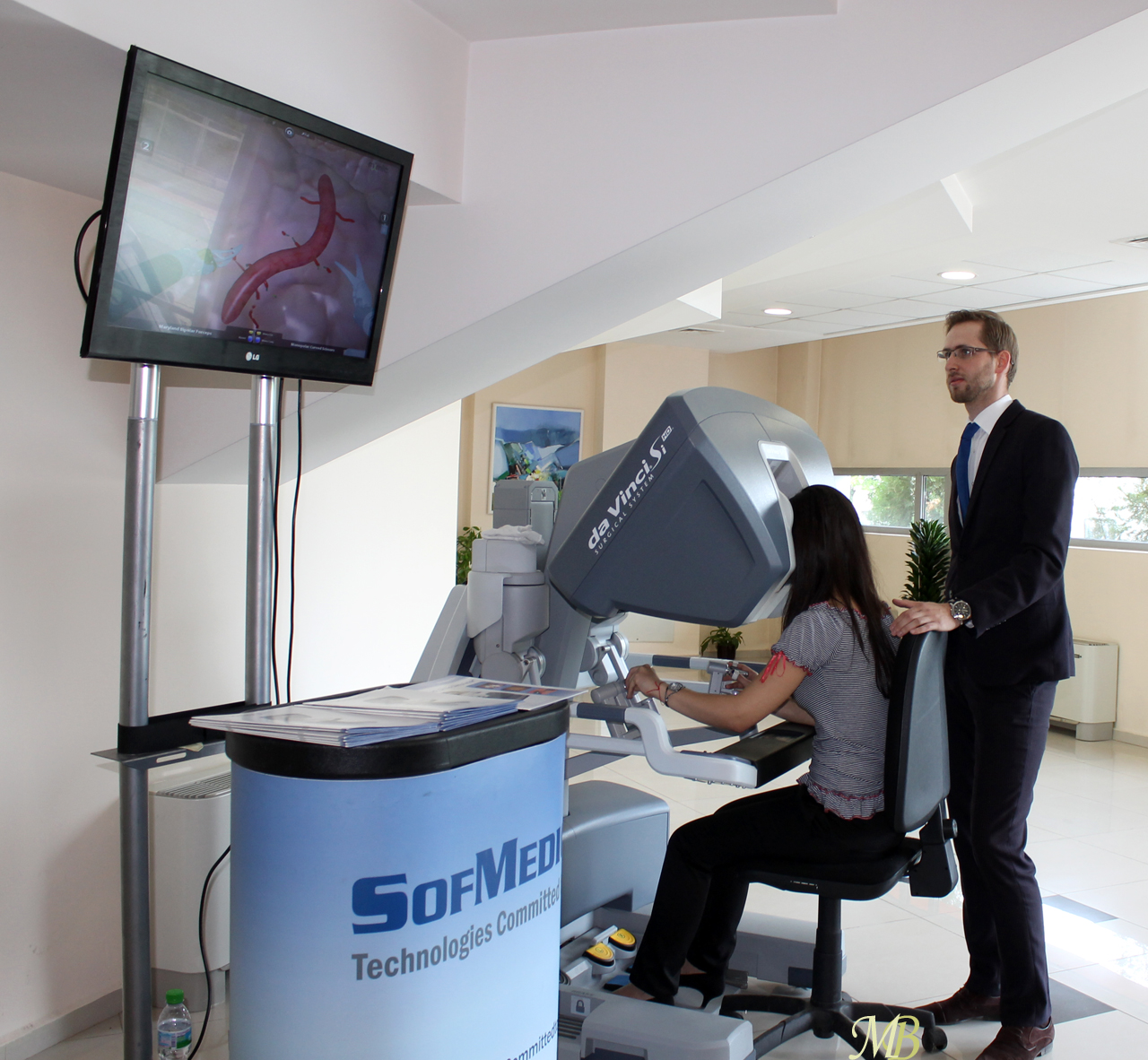 Демонстрацията за представителите на медиите беше извършена в зала „Амброаз Паре" на единствения за Източна Европа и Балканския полуостров Телекомуникационен ендоскопски център – ТЕЛЕЦ. Центърът е и първият в Източна Европа, който разполага с виртуален ендотренажор. Това е система за обучение по ендоскопска хирургия в реално време. Системата съдържа няколко вида операции, на които студентите могат да се обучават. В случаи, че сгрешат програмата не дава възможност операцията да бъде довършена. За създаването на различните казуси авторите на програмата са компилирани кадри много реално извършени операции.