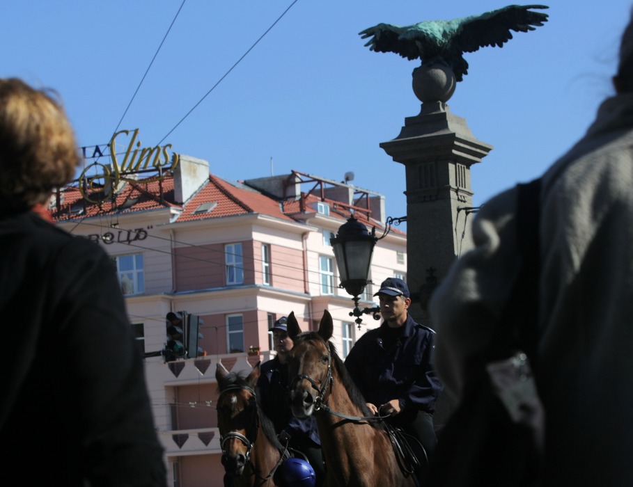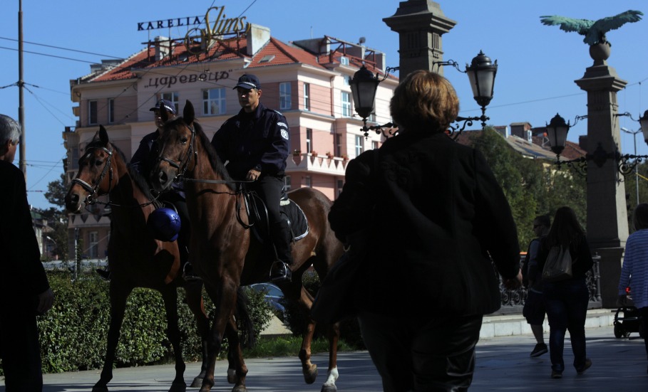 Конна полиция бди на столичния „Орлов мост“ преди футболния двубой между България и Хърватия тази вечер. В района има засилено полицейско присъствие, което следи за спазване на обществения ред преди важната евроквалификация.