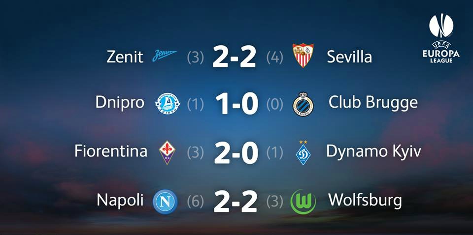 Така четирите полуфиналисти в Лига Европа са Днипро, Севиля, Наполи и Фиорентина. Жребият ще бъде изтеглен утре в Нион (Швейцария).