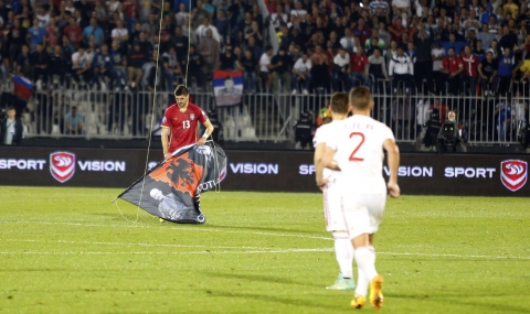Мачът на стадион "Партизан" бе прекратен заради прелитащ дрон с развят албански насионалистически флаг, което вбеси домакините. Сърбите свалиха знамето, с което започнаха и безредиците.