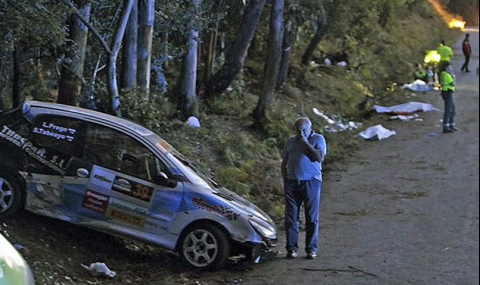 Състезателна кола излетя от пътя с висока скорост и помете чест от публиката край трасето по време на надпреварата в северозападната област Галисия.