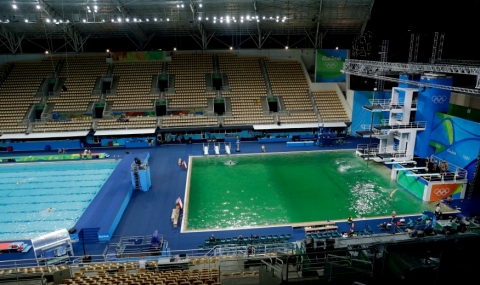 Олимпийският басейн за скокове във вода в Рио де Жанейро, който смути спортната общественост поради необичайния зелен отенък на водата вътре, беше затворен.