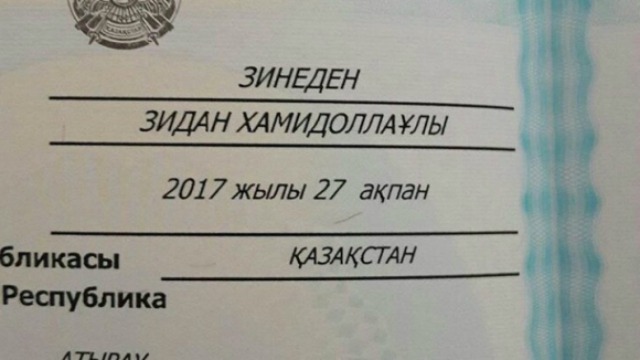 Семейство в Казахстан реши да нарече новородения си син на бившия френски футболист и треньор на Реал (Мадрид) в момента Зинедин Зидан. Двойката не е копирала напълно името на френската футболна легенда и е записала детето като Зинеден Зидан, променяйки една буква.