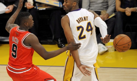 Звездата на Лос Анджелис Лейкърс Коби Брайънт отбеляза изключително красив кош в мача с Хюстън Рокетс късно снощи. 33-годишният гард подаде сам на себе си под противниковия кош, удряйки топката в таблото, след което отбеляза две точки за "Езерняците".