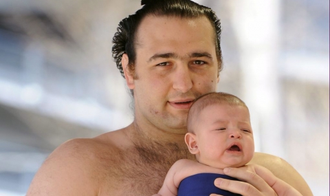 В средата на тази седмица пък най-силните "рикиши" (борци) посетиха шинтоисткия храм "Ясукуни" в центъра на Токио. Там за радост на 13 000 зрители те изпълниха церемониални действия и проведоха демонстративни борби. Именитият българин, първият европейски "одзеки", показа в храма пред всички за първи път своя четиримесечен син Кирил (на снимката).