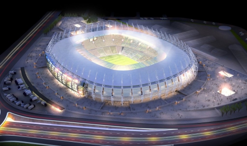 По-късно Русеф дръпна зелената панделка и откри паметната плоча на обновения градски стадион, който ще бъде използван и за Купата на Конфедерациите през юни 2013 г.
