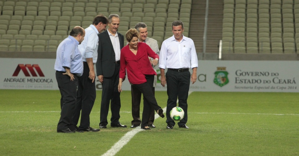 Русеф ритна футболната топка в центъра на стадион "Арена Кастелао" пред камерите два пъти, заедно с губернатора на щата Сид Гомес и министъра на спорта Алдо Ребело.