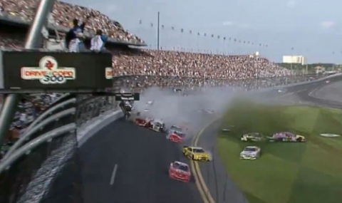Катастрофата е станала на финалната обиколка. Един от автомобилите, управляван от дебютанта в състезанието - Кайл Ларсон, излетял във въздуха, след удар в колата на Рейган Смит.