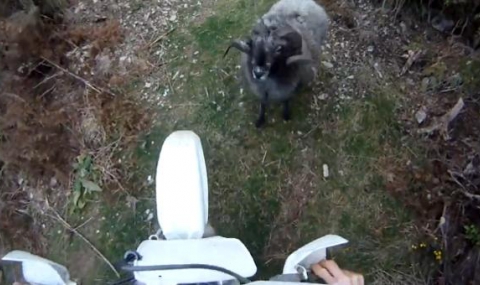 Озверял овен опита да пробие гумите на състезателя по мотокрос Март Тод в горите на Нова Зеландия.