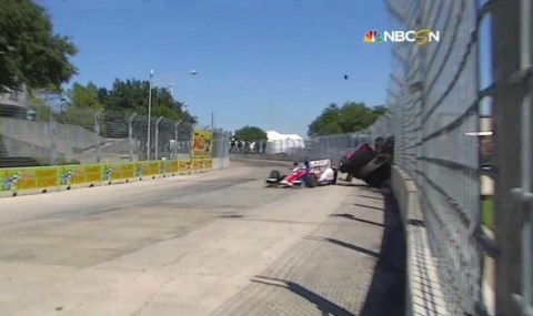 Трикратният победител в „Индианаполис 500“ се блъсна с японския пилот Такума Сато в един от финалните завои, след което излетя във въздуха и се завъртя няколко пъти, а отломки от болида му се разхвърчаха към зрителите на състезанието.