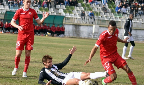 „Червените“ откриха резултата още в 8-ата минута. Митрев направи страхотна грешка, подарявайки топката на Ивайло Чочев, който се възползва по прекрасен начин и даде преднина на тима си. В 15-ата минута Мартин Петров центрира от корнер, а Валентин Илиев засече топката на първа греда и удвои.