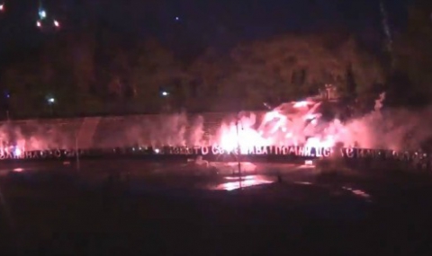 Ултрасите все пак опъната транспарант с надпис „История, изпълнена със слава, но днес бъдещето се решава! Помни, ЦСКА е име, което задължава” и обляха в светлина стадиона в сърцето на Борисовата градина.