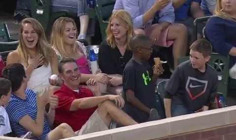 Малък, но хитър фен се прояви като истински кавалер на мача между Торонто Блу бойс и Тексас Рейнджърс от Националната бейзболна лига на САЩ. Детето получи топката от играч на терена и безкористно я подаде на красиво момиче, седящо зад него.